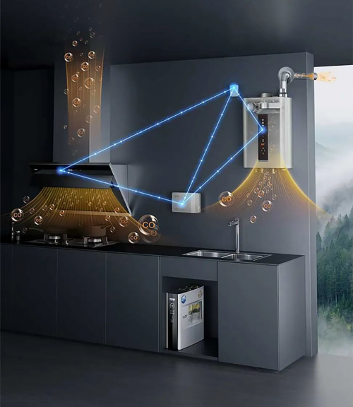 不僅如此,A.O.史密斯還于日前將「瀞」油煙機接入了其自主研發“以人為中心”的全聯全控智能物聯系統——AI-LiNK。該系統讓用戶家中原本孤島式的智能家電產品真正“鏈接”了起來。通過AI-LiNK,油煙機、燃氣熱水器、雙氣體報警器可以實現智能聯動,實時地監測廚房內的有害氣體。一旦監測到廚房內一氧化碳、甲烷等濃度超標時,系統可以迅速啟動聲光報警,并快速將有害氣體排出室外,有效地避免了室內空氣的污染,全天候地智能守護家人的安全。