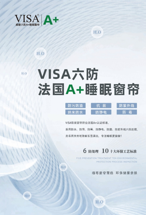 VISA高端軟裝一直致力于為消費者提供高品質、健康環保的家居產品。從窗簾到墻布,從藝術漆到墻板,從家具到飾品,VISA高端軟裝都力求做到精益求精。相信在未來的軟裝大家居市場中,VISA六防A+睡眠窗簾將成為引領潮流的重要力量,為更多家庭帶來健康、舒適和美好的居住體驗。