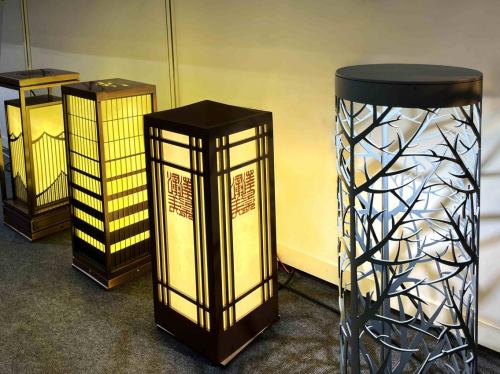真優美攜五大系列28款新品亮相現場:景觀定制燈光、多功能綜合燈桿、太陽能照明、機場高桿照明和現代城市商業照明。通過專業講解、產品演示等多種方式,全方位展示了真優美照明產品及解決方案,吸引了眾多參觀者駐足觀看、咨詢交流,展區現場始終保持著超高人氣。其中景觀定制燈光“電子元素”系列景觀小品產品成為當天的明星產品,精湛的工藝,極致的性價比,贏得每個進來展廳客戶的稱贊,紛紛拋來合作的橄欖枝。有的新客戶甚至表示,雖然現在手頭沒業務合作,但未來一定有機會,并相互握手合影留下名片。