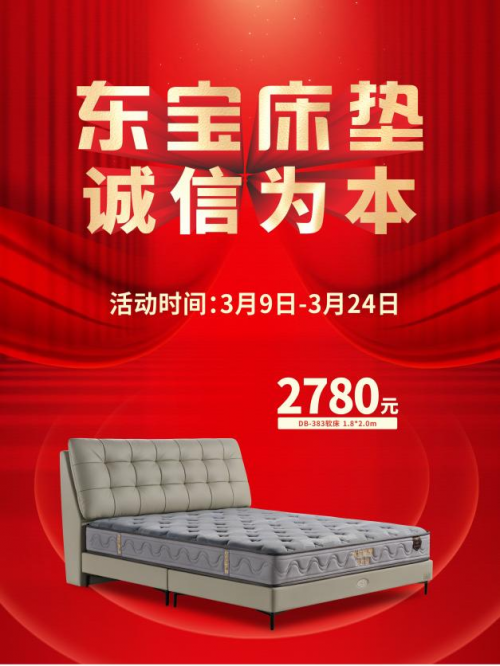 春風(fēng)送暖,萬象更新。為配合大家的家居煥新大計(jì),3月9日-3月24日,東寶床墊舉行開門紅活動,推出兩款高性價(jià)比的產(chǎn)品,回饋廣大消費(fèi)者的支持與認(rèn)可。