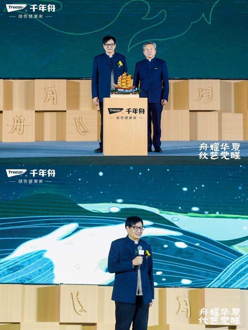 千年舟紀錄片《舟渚問道》,再現了千年舟對傳統文化的深度挖掘與傳承,全場嘉賓共同見證文化傳承的時代接力。以古鑒今,重塑內核。從一張好板到一室幾柜,從一方居所到一處建筑,千年舟不斷傳承傳統文化之薪火,將文化融于產品,以文化鏈接萬物。