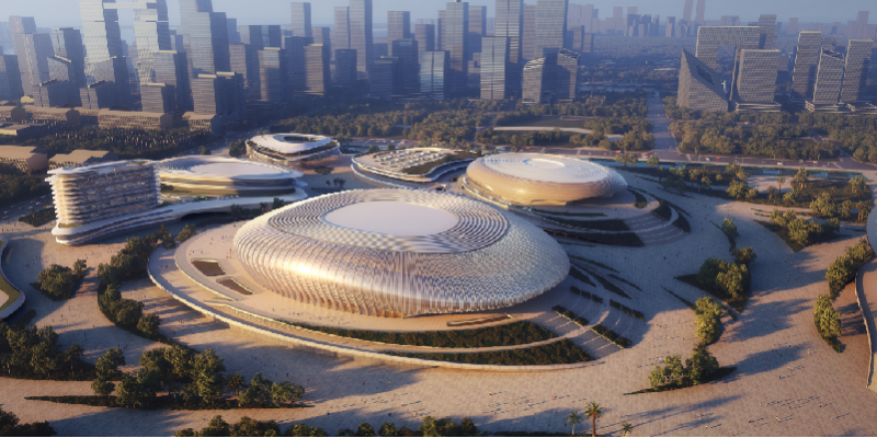 據了解,南沙全民文化體育綜合體項目位于粵港澳大灣區的“幾何中心”——廣州市南沙區二十一涌海邊,南鄰伶仃洋,西側為洪奇瀝水道,東側為蕉門水道,總建筑面積約49萬平方米,包含6萬座綜合體育場、2萬座綜合體育館、4000座游泳跳水館及運動員中心、停車樓等單體,是集文化旅游、體育等功能為一體的大型城市綜合體。