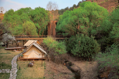 此外,鈴動春色與斑斕風車也為春天增添了悅耳的聲音,讓游客們在微風輕語中感受春天的氣息。除了這些互動體驗,古北水鎮還在多處設置了與春天主題相關的裝飾和布景。木橋處的橋欄花卉、山頂教堂的“打翻的春天”“流動的風”以及擺渡車上的“開往春天,共赴美好”等,每一處都洋溢著春天的活力與生機,讓游客們置身于青山綠水相映的畫卷之中,盡情領略春天的魅力。