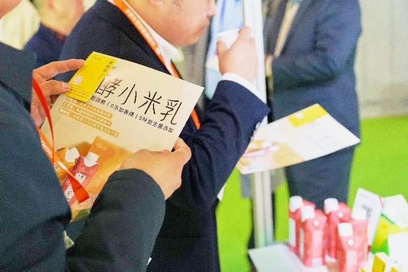 在米粒U格展臺前一直人流不斷,人們不時停留駐足,詢問企業信息和產品特點及進貨方式,現場氣氛熱烈,工作人員也熱情滿滿,對每個問題都事無巨細。在當前健康消費意識逐步深入人心的前提下,消費者在購買飲品時更關注成分和熱量“低/無/減卡路里”,“0添加”“0脂肪”等賣點,而這與一和和禾集團旗下品牌米粒U格發酵小米乳追求健康的理念不謀而合。米粒U格以太行紅苗谷小米為原材料,配合專利酶解與發酵技術而制成的0脂肪、0膽固醇、0添加香精的發酵小米乳。不僅“低糖、低卡、低脂”,更是憑借其天然健康營養、口感風味獨特、環保低碳等優勢贏得了眾多消費者的青睞。