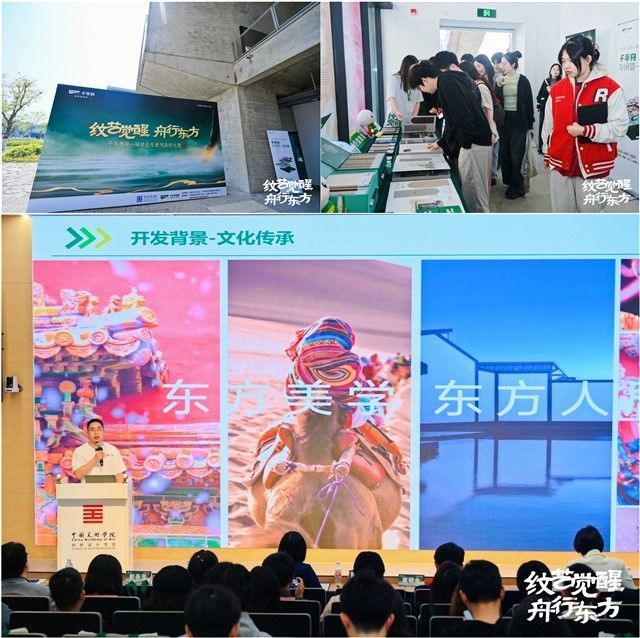 千年舟集團(tuán)副總裁田茂華女士在致辭中表示,本次大賽高校宣講選擇在中國(guó)美術(shù)學(xué)院·良渚校區(qū)啟航,既是由于千年舟與國(guó)美同根同源,也是對(duì)國(guó)美這個(gè)“中國(guó)現(xiàn)代藝術(shù)教育搖籃”的致敬,亦是希望國(guó)美之深厚藝術(shù)底蘊(yùn)、銳意設(shè)計(jì)風(fēng)尚,為本次大賽書寫下絢麗華章。本次大賽以“紋藝覺(jué)醒·舟行東方”為主題,旨在深入挖掘東方國(guó)色、文化要素,通過(guò)大賽這一紐帶,以賽促研、賡續(xù)薪火,做中華傳統(tǒng)文化之傳承者、踐行者,將中國(guó)傳統(tǒng)文化價(jià)值及綠色發(fā)展理念傳遞給更多的年輕人。