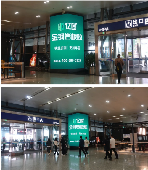 65塊媒體大屏,持續高強度品牌曝光,實現億固金鋼巖板膠宣傳最大化的全方位覆蓋。