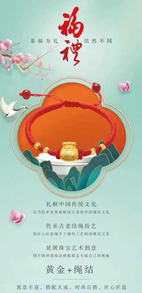 本次開業,在永明德黃金城在開業當日,發布新品牌——“福●禮”,開拓黃金珠寶+非物質文化遺產“中國繩結”的產品新賽道。