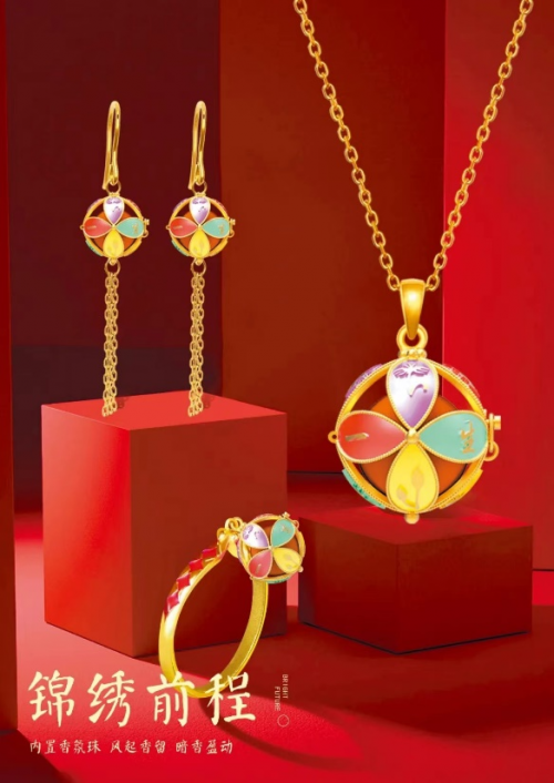 本次永明德深圳水貝2000平米展廳的開設,也成為永明德“黃金+”概念的展示窗口,除了逾千款新品上市,榮獲2021廣西有禮企業組優秀獎的《盤王印鑒》、榮獲2021廣西有禮網絡最佳人氣獎的《桃花運》《錦繡前程》、國家級非遺《江永女書》,榮獲107屆美國巴拿馬太平洋萬國博覽會入圍獎《勵志》等原創作品也將集中展出。