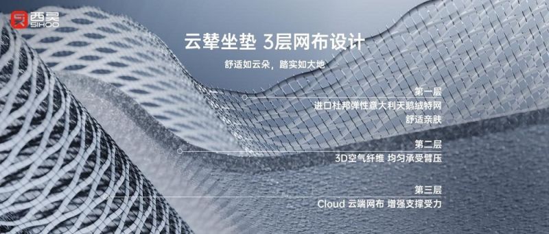 打破傳統座墊材料局限,三層網布設計更舒適