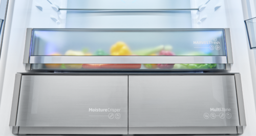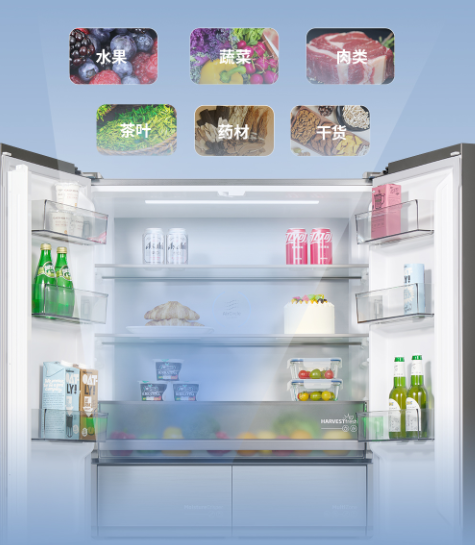 超寬果蔬盒設計,讓整根大蔥、芹菜等蔬菜也能輕松收納。搭載HarvestFresh光合養鮮科技,創新三色光模擬24小時自然光照變化,讓蔬果在冰箱中持續生長,高效保留果蔬維A維C含量。保鮮不僅停留于表面,更從內而外地呵護食材的新鮮與營養。