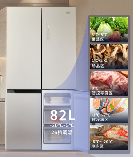 冰箱內設有-20℃~5℃大寬幅變溫區,自由調節,冷凍冷藏隨心切換。夏天可作為額外的冷藏室儲存大量蔬果,冬天則可轉變為冷凍或珍品儲藏區囤儲年貨,滿足全年食材保鮮的多樣化需求,鎖鮮無界限,享受極致保鮮體驗。