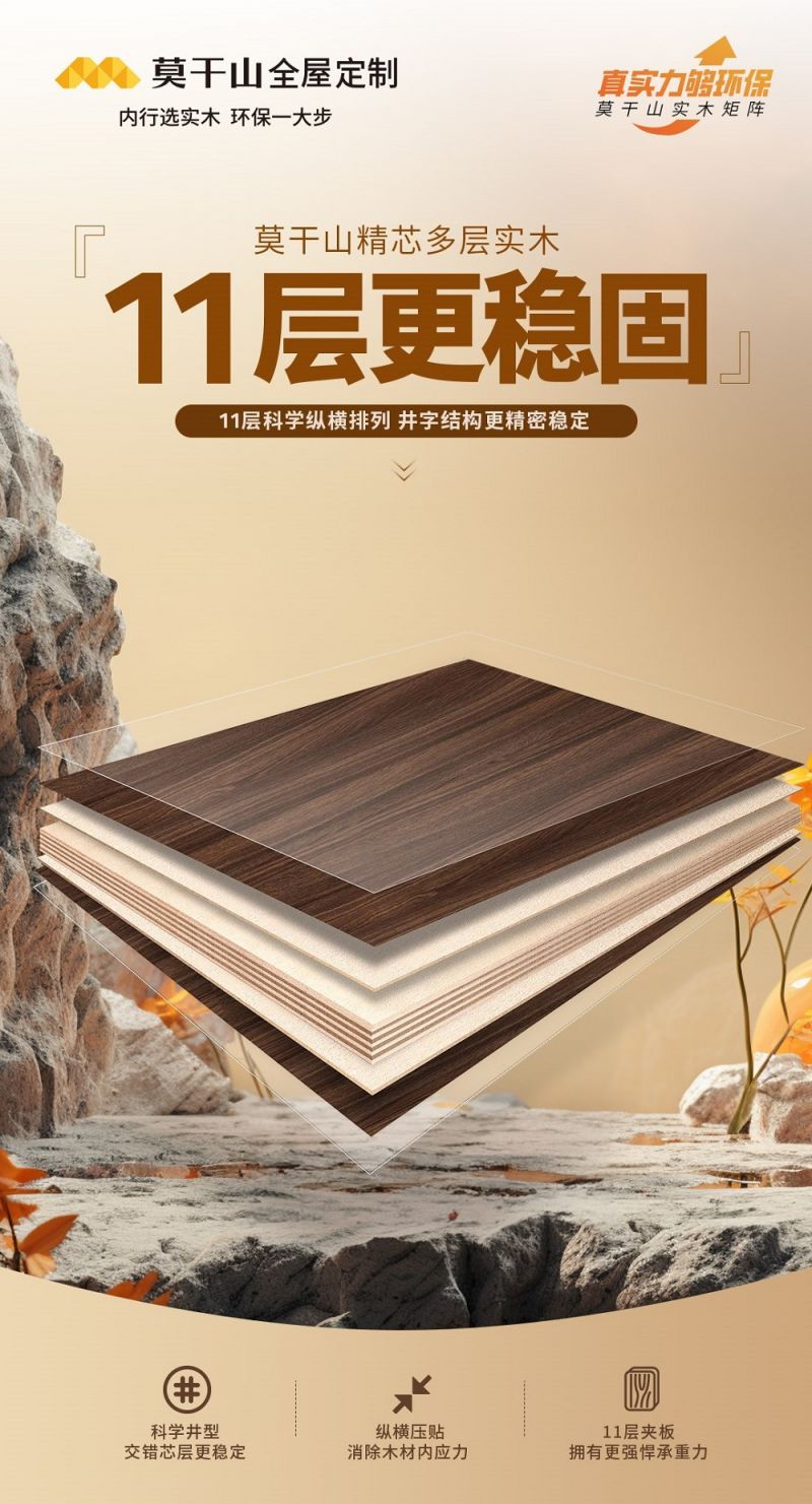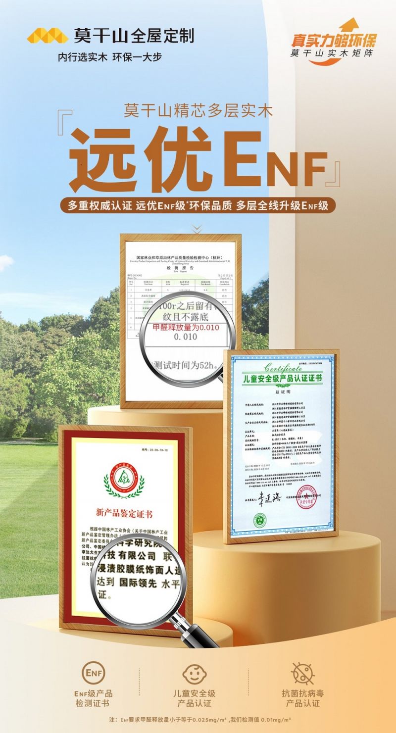 莫干山家居始終立足于實(shí)木芯特色產(chǎn)品,以環(huán)保為核心,以消費(fèi)者需求為導(dǎo)向,深刻理解當(dāng)代消費(fèi)者心理,全面升級(jí)莫干山精芯實(shí)木多層板,致力于為消費(fèi)者提供便捷、舒適、安心的環(huán)保家居生活體驗(yàn)。