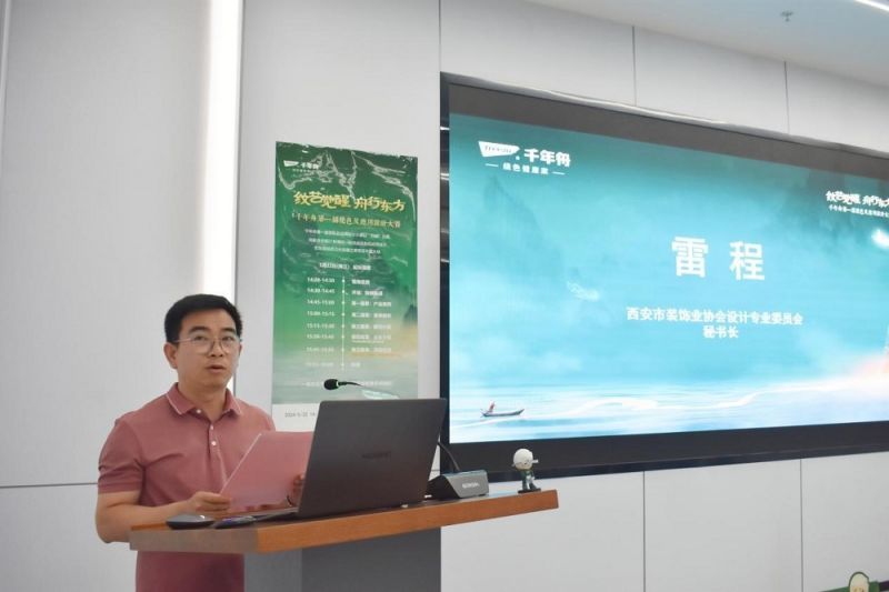 西安市裝飾業協會設計專業委員會秘書長雷程在致辭中強調,設計是裝飾行業的核心靈魂,是推動行業前行的動力。設計專業委員會的成立,旨在集結行業精英,共同探索設計理念,提升設計水平。他提到,千年舟第一屆花色及應用設計大賽既是對傳統文化的尊重,又是對未來設計的熱切期待。大賽旨在為設計師們搭建交流平臺,激發創新思維,探索設計與應用的邊界。他深信,此次大賽將激發行業創新活力,推動行業升級。