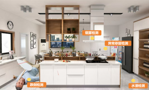 用戶可以通過手機App實時查看監(jiān)控錄像,并進行遠程控制,實時監(jiān)控家庭安全,配合移動偵測和報警功能,及時發(fā)現(xiàn)異常情況。系統(tǒng)集成了煙霧監(jiān)測、摔倒檢測、異常停留檢測、哭聲檢測等多項功能,對家庭安全問題進行實時監(jiān)測。