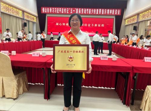 佛山市表彰大會(huì)代頒廣東省五一勞動(dòng)獎(jiǎng)狀(右一)