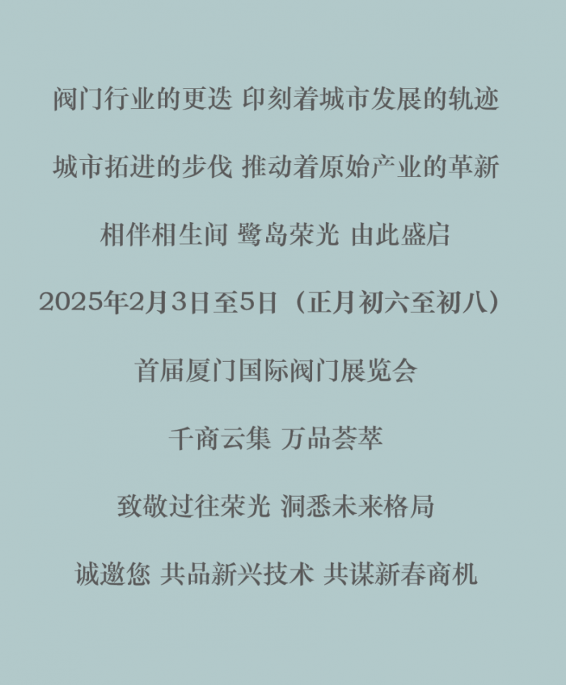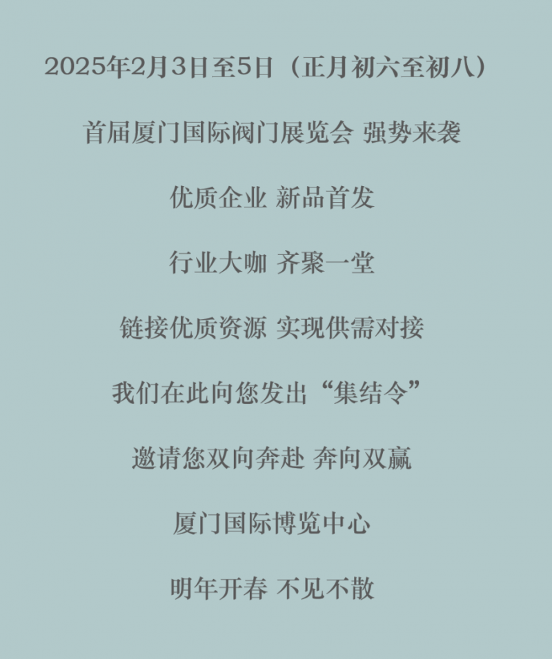 同期,還將開展“高端閥門國(guó)際采購(gòu)對(duì)接會(huì)”,搭建國(guó)際采購(gòu)橋梁,助力展商與全球買家無縫對(duì)接;開展“經(jīng)銷商聯(lián)誼會(huì)”,在近距離交流中增進(jìn)情誼,共謀發(fā)展大計(jì);舉辦“優(yōu)秀展品評(píng)選活動(dòng)暨頒獎(jiǎng)盛典”,讓獲獎(jiǎng)?wù)攥F(xiàn)場(chǎng)分享成功經(jīng)驗(yàn)和未來展望,致力開創(chuàng)展會(huì)細(xì)致服務(wù)的新道路。