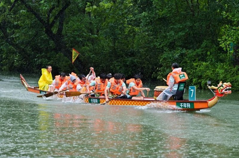 比賽在西溪深潭口至千金漾1200米長度的水道中舉行,采用國際標準龍舟,實行河道追逐競賽的形式。來自奧地利、俄羅斯、美國等國家共十支龍舟隊參加競逐。作為本土知名企業,千年舟組建龍舟隊,成為十支龍舟隊之一,憑借隊員們出色表現勇奪冠軍,成為賽事一大亮點。