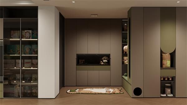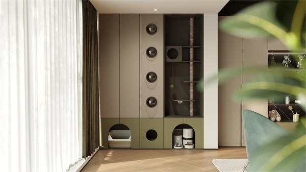 在整家布局中,“瓦爾登”系列充分發(fā)揮設(shè)計力,以貓咪太空艙、貓狗專屬喂食區(qū)、互動陽臺等特色功能區(qū)的設(shè)置,將寵物需求與人居動線結(jié)合,并不一昧地將人與寵物實現(xiàn)分隔,而是通過量身定制的實用分區(qū),讓人寵互動能在更包容的空間中實現(xiàn)。