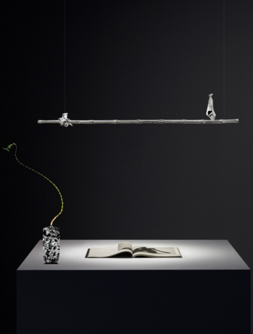 此作品靈感來(lái)自蘇東坡所做的一首詞《定風(fēng)坡:莫聽(tīng)穿林打葉聲》,作者用竹子的形象來(lái)設(shè)計(jì)簫,比喻人要有氣節(jié)和風(fēng)骨,抽象的蘇東坡雕塑瀟灑立定在長(zhǎng)簫上,吟嘯徐行之態(tài),一生任憑風(fēng)吹雨打,始終從容、鎮(zhèn)定、達(dá)觀。此作品用途可做為茶室、書房和客廳的陳設(shè)掛件裝置,亦有燈光照明的功能效果。