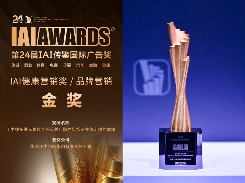 在本年度IAI健康營銷獎的角逐中,江中牌多維元素片憑借其深入人心的全民公關項目——"隱性饑餓正在偷走你的健康",在1007家參與企業(yè)及3682個參賽作品及案例中脫穎而出,榮獲金獎。