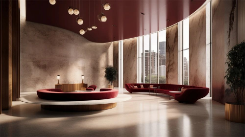 空間在材料語言與空間語法的組合上與大西美學商業思維與空間功能相契合,柔軟的酒紅色絲織品與深色石材的碰撞是品牌精神凝華為空間實體的精彩演繹。同時各樓層間又通過細節相互呼應,空間序列張弛有度,形成由美美學完整的空間形象體系。