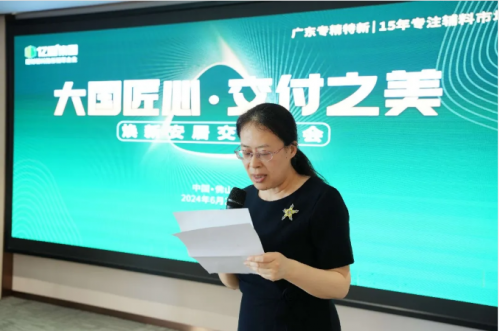 廣東省裝飾行業協會秘書長郭爽在致辭中表示:“廣東省裝飾行業協會一直致力于推動裝飾行業的創新發展,我們非常高興能與億固集團共同主辦此次峰會。煥新安居交付峰會不僅是一個展示行業最新技術和服務的平臺,更是一個促進行業內外交流合作的重要契機。”