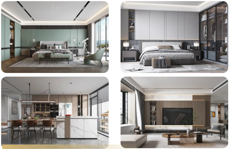 為了更好滿足更多消費者的需求,千年舟推出的飾能板飾面系列不僅花色多樣,色澤美觀,更是兼具質感和觸感,可適用于各類全屋定制家具及超高門板的制作,滿足全國范圍內大多數家庭多種不同飾面工藝要求。此外千年舟飾能板飾面系列基板24小時吸水厚度膨脹率≤12%,優于潮濕狀態下使用刨花板(P5型)≤15%的標準要求,可在浴室、廚房、陽臺等特殊場合使用,應用范圍更廣。