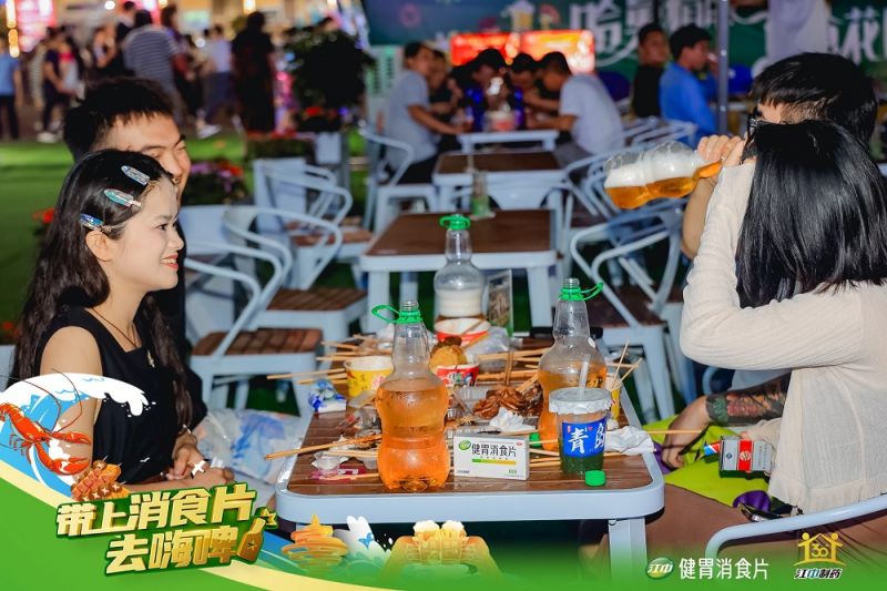 這種美食與消食兩不誤的現象,不僅揭示了當前年輕人“既要口感,又要健康”的心理,更點出了他們對“無負擔飲食”的期待。夜宵、啤酒、燒烤,這些美好的食物總是讓人不由自主地想多吃,此時便需要“消化力”來助陣。而江中牌健胃消食片在啤酒節上的主張是“帶上消食片去嗨啤,盡享美食無負擔”,也就恰好擊中了年輕人的心弦。