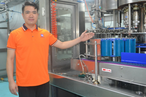 走進(jìn)江蘇雨果飲品有限公司生產(chǎn)車間,只見水處理車間、吹瓶車間、灌裝車間、貼標(biāo)車間、包裝車間、碼垛車間等均是全自動(dòng)化生產(chǎn)流水線設(shè)備,20名工人正有條不紊地操作機(jī)器,整個(gè)生產(chǎn)車間呈現(xiàn)一派有序而忙碌的氛圍。
