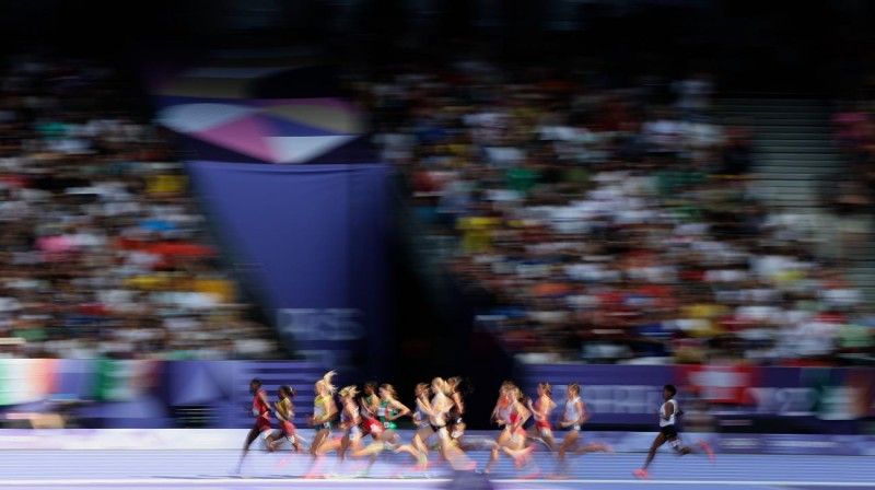 8月6日,參賽選手在比賽中。當日,巴黎奧運會田徑女子1500米第一輪比賽在法蘭西體育場舉行。新華社記者 李鋼 攝