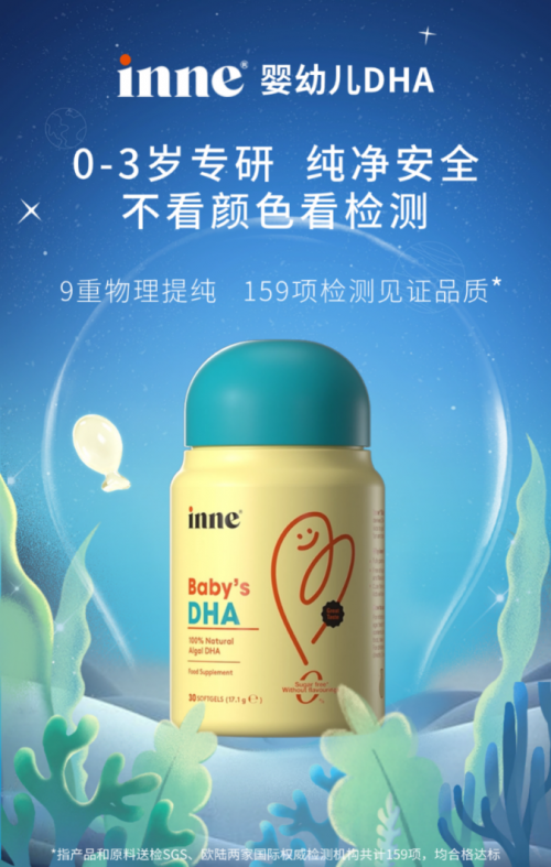 今年6月,inne延續(xù)其“分齡精準(zhǔn)補充營養(yǎng)”的理念,推出專為0-3歲嬰幼兒研制的DHA產(chǎn)品。inne嬰幼兒DHA精選更純凈的高品質(zhì)藻油,通過0添加的原料保障以及更科學(xué)的萃取工藝設(shè)計,重新定義DHA品質(zhì)科學(xué)標(biāo)準(zhǔn),引領(lǐng)嬰幼兒營養(yǎng)品市場進入更純凈、更安全的新階段。