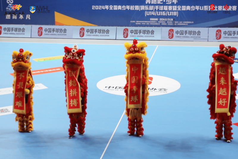 現場觀眾被這精彩絕倫的表演深深吸引,掌聲、歡呼聲此起彼伏。就在這熱烈的氛圍中,獅子嘴里吐出四個醒目而振奮人心的字符——“不畏艱難、頑強拼搏、中國手球、越來越好”,這正是王濤主席親選的祝福語。這四句話宛如希望的火炬,瞬間點燃了全場的激情,為開幕式注入了強大的精神力量,也照亮了中國手球未來的發展道路。至此,本次開幕式在這令人心潮澎湃的精彩瞬間中圓滿結束。