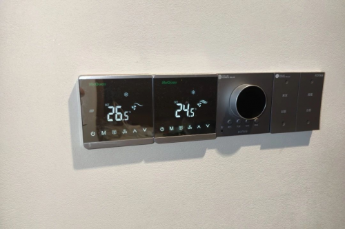 溫控器的品質與科技感,影響著項目的室內裝修風格,麥克維爾MC328溫控器采用極簡的生活美學設計,超薄微弧機身,88%高清屏占比,搭配銀色金屬邊框,金屬與玻璃面板質感交相輝映,如藝術品般精雕細琢,與長沙綠地V島意式極簡的設計理念不謀而合。
