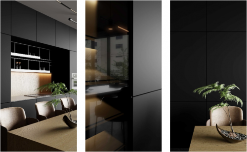 玄夜黑深沉而神秘的色調,為空間帶來了一種獨特的韻味。這種板材不僅質感細膩,觸感舒適,更能在視覺上營造出一種低調而奢華的氛圍。