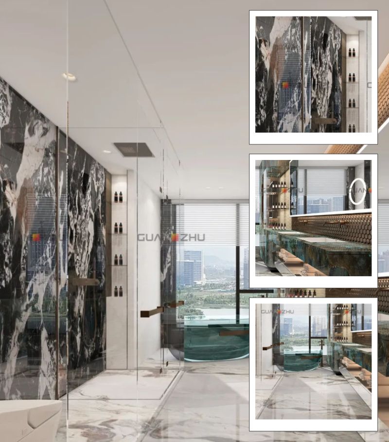 比如在「質感雅苑」空間套餐中,他就特意選擇在主衛空間地面通鋪冠珠韶華-日上東方巖板,明亮的色彩,還有富有深意的產品寓意,象征著光明與希望,也在無形中賦予居住者積極向上的生活態度。