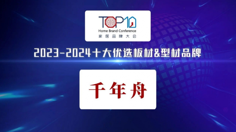 近日,2024第八屆家居品牌大會在北京盛大舉行,現場發布34個重磅榜單,千年舟榮耀上榜“2023-2024十大優選板材&型材品牌”,它代表著2023-2024年度里為家居企業或消費者提供板材或型材產品服務的十個優秀品牌。