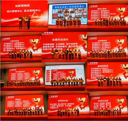 在經濟下滑的大環境中,永吉地板始終保持著穩定的上升趨勢,終端依然涌現出很多逆流而上的優秀者。值此大會的契機,永吉地板特別頒發了優秀企業家、木精髓推廣獎、全國杰出店長獎、優秀店長獎、金牌服務獎、服務之星、客戶滿意度獎、工程開拓獎、渠道貢獻獎、創新營銷獎、新銳獎等多個榮譽,為彼此在奔赴前程中給予動力與支持。