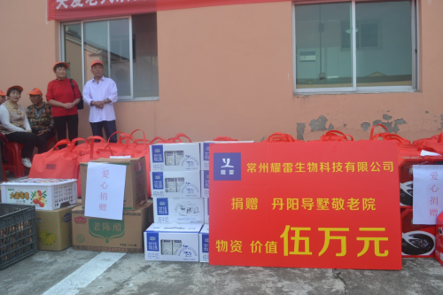 一滴泉水,滋潤大地。一米陽光,溫暖人心。當天,常州耀雷生物科技有限公司向導墅鎮敬老院捐贈了康復理療儀器等設備及過冬棉被、醋、毛巾紙巾等生活用品和牛奶、雞蛋、水果等食品等物資,總價值達五萬元。