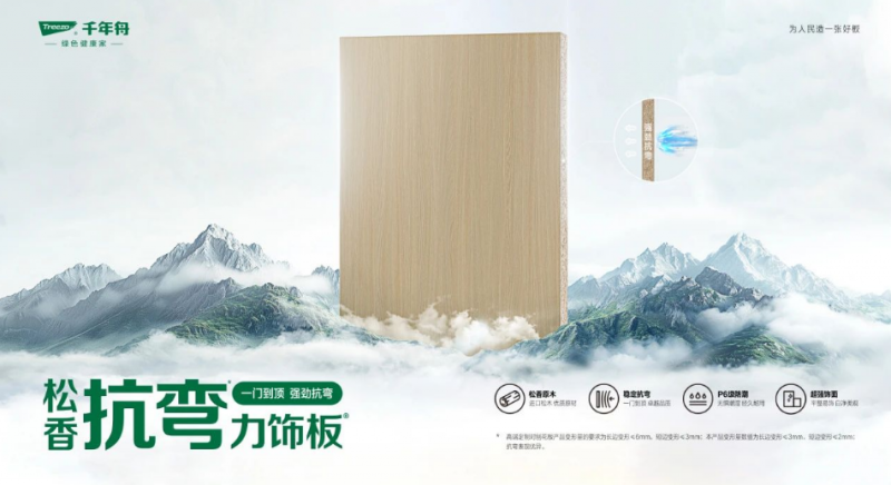 隨著經濟的持續發展和生活水平的提高,消費者對家居環境的舒適度和美觀度要求越來越高。現代家居更加個性化,審美亦趨向于簡約、大氣,通高柜體、大尺寸門板更廣泛應用于家裝工裝領域。千年舟松香抗彎力飾板,技術革新,不受限于傳統柜門制作,大大滿足強力抗彎、超高柜門等家具定制。