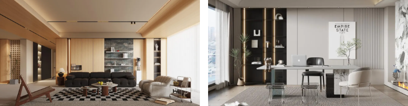 基板平整,飾面才更易貼合。千年舟飾能板飾面系列基板厚度偏差±0.15mm,表面細膩超平整,可滿足實木要求的同時達到不同飾面加工工藝,如UV光固化、PP、PET、高光、三胺紙純色等,精美飾面,時尚美感??蓮V泛適用在全屋定制家具及超高門板制作。