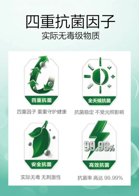 千年舟飾能板飾面系列采用高環保性能的“鋅”效抗菌技術,兼具四重抗菌、高效抗菌、安全抗菌、24h全天候抗菌四大優勢。經第三方權威機構檢測,對日常生活中常見的金黃色葡萄球菌、大腸桿菌、銅綠假單胞菌、肺炎克雷伯氏菌,抗菌率達99.99%。同時經急性經口毒性試驗和一次完整皮膚刺激試驗結果顯示抗菌材料實際無毒無刺激性,屬實際無毒級物質!