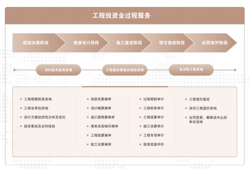 提供工程建設項目全生命周期一站式、專業化的管理、合規和信息咨詢服務,助力客戶項目順利實施及良好運維。