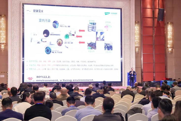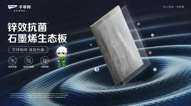 在上午的大會上,千年舟集團研究院 魏院長發表了《科技引領,賦能家居健康新風向》的主題演講,深度探討了當下市場需求的健康變革,面對人居健康需求的進一步提高,千年舟再一次打破研發壁壘,革命性推出了鋅效抗菌石墨烯生態板,這是人造板領域與石墨烯的首度跨界聯手,精準契合消費者對健康安全的高標準需求,以科技力量推動行業革新。