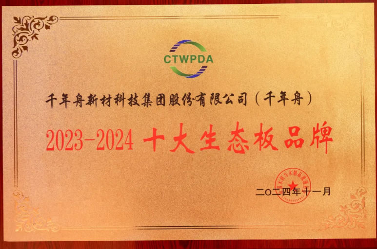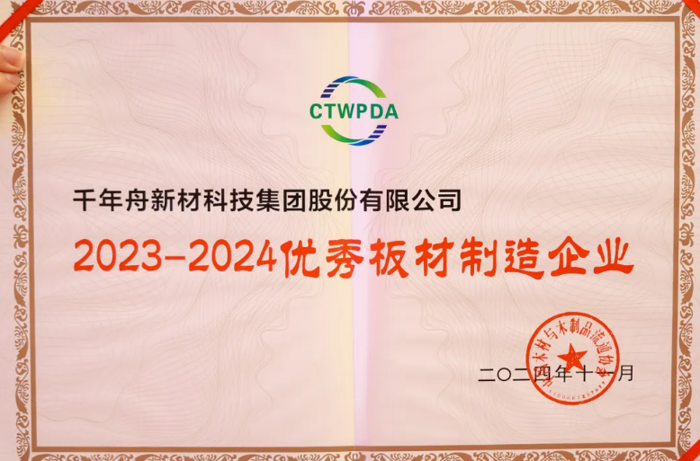 在下午舉辦的2024板材與家居品牌創新研討會上,千年舟憑借卓越的產品品質、創新的研發理念以及強大的市場影響力,一舉榮獲“2023年度優秀板材制造企業”、“2023 年度十大生態板品牌”兩項大獎,盡顯品牌實力。