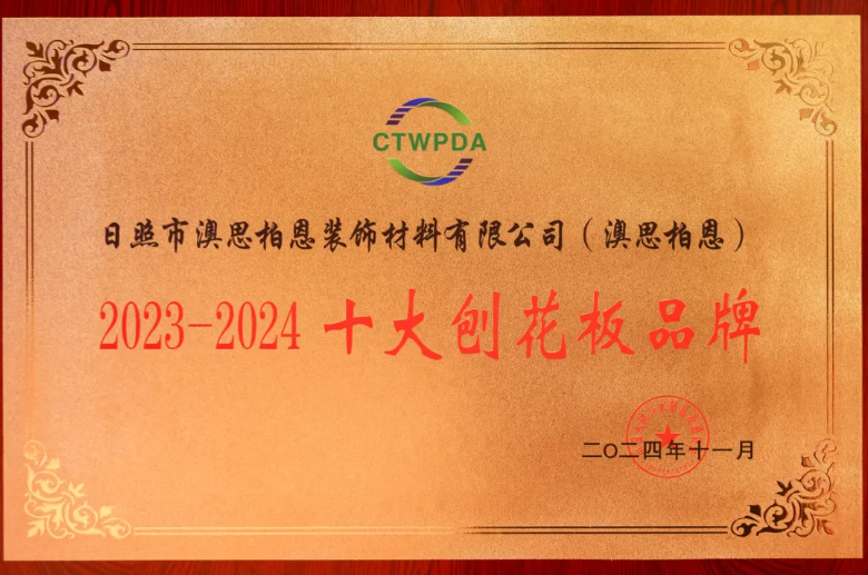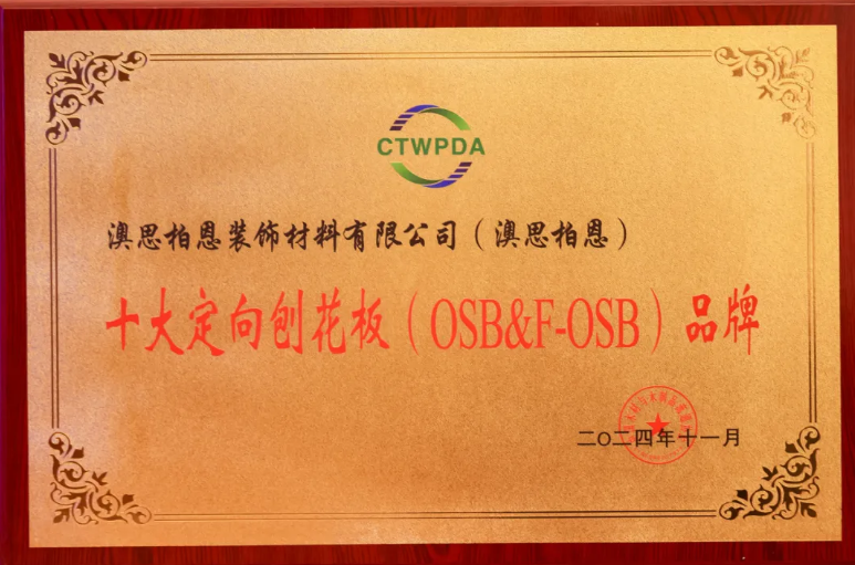 同時千年舟地板榮獲“中國地板國家品牌”;千年舟集團旗下澳思柏恩榮獲“2023-2024度十大刨花板品牌”、“ 十大定向刨花板(OSB&F-OSB)品牌”,連斬5獎,千年舟再次刷新品牌榮譽榜!