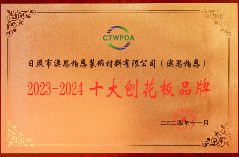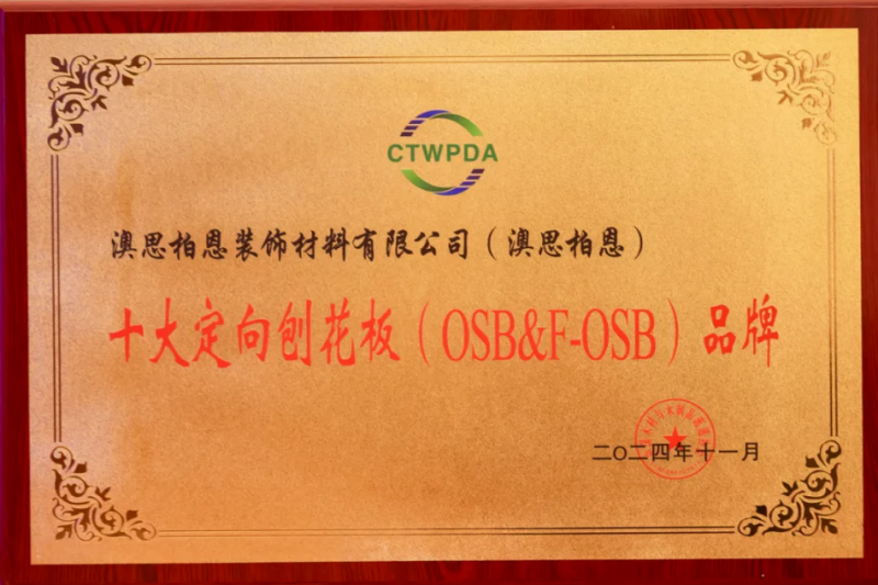 會上,澳思柏恩憑借出眾的產品品質與卓越的市場影響力榮獲「2023-2024十大刨花板品牌」、「十大定向刨花板(OSB&F-OSB)品牌」,再度展現超凡實力。