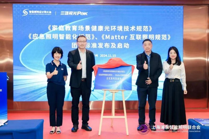 值得一提的是在此次論壇上發布和啟動了三項團體標準。一是《家庭教育場景健康光環境技術規范》,為家庭教育場景的健康照明設計提供科學參考;另外是《應急照明智能化規范》和《Matter互聯照明規范》,標志著行業在智能化、互聯性與安全性上邁出了重要一步。上海浦東智能照明聯合會會長李志君、SILA 副會長\三雄極光副總裁林巖等領導現場見證。