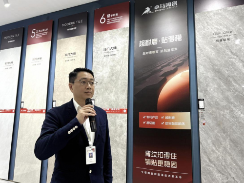 招錦欣:關于新產品的未來發展市場,我認為主要體現在以下三個方面。在產品優勢方面;卓馬企業的非凡大師系列在技術上有顯著的突破,采用了獨特的生產工藝和先進的燒制技術,這些都能顯著提升產品的性能和品質,成為市場上的一大優勢。此外,我們還引進了進口釉料層層堆疊和噴印技術,這些技術不僅提升了產品的視覺效果和觸感,還使得耐磨性能和超平效果非常出眾。