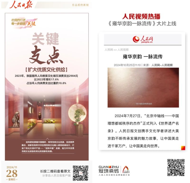 其中冠珠華脈巖板以龍為魂,以陶為根,以華夏古都名城文化為脈絡(luò),糅合現(xiàn)代工藝與潮流設(shè)計(jì),2021年聯(lián)合人民日?qǐng)?bào)文創(chuàng)首創(chuàng)冠珠華脈1.0系列IP產(chǎn)品,推出以古法陶瓷為靈感的「窯寶龍脈」、以敦煌地域文化為靈感的「敦煌印象」;2022年,冠珠賡續(xù)城市文脈,以巴蜀文化之美打造「漫步巴蜀」系列;2024年,以“北京中軸線——中國(guó)理想都城秩序的杰作”申遺成功為契機(jī),凝煉北京中軸線上京城宮墻美學(xué)、京作天工技藝的文化與藝術(shù)精粹,冠珠華脈巖板「雍華京韻」系列在北京人民日?qǐng)?bào)總社驚艷首發(fā),引領(lǐng)高定巖板新風(fēng)尚,致力在世界的舞臺(tái)上詮釋國(guó)都風(fēng)范、古都底蘊(yùn)與國(guó)韻新潮!