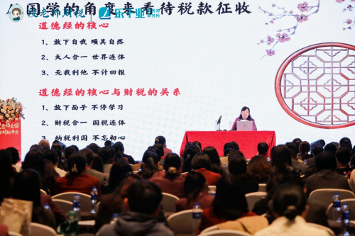 本次會議的組織者段付勤老師在大家的千呼萬盼中,在會議的第二天下午終于開啟了《國學眼中的財稅思維》的分享。段付勤老師說:不管是企業還是個人,都要做到忠孝仁義禮智信。從國學的角度來看待稅款的征收:納稅利國,不忘初心。